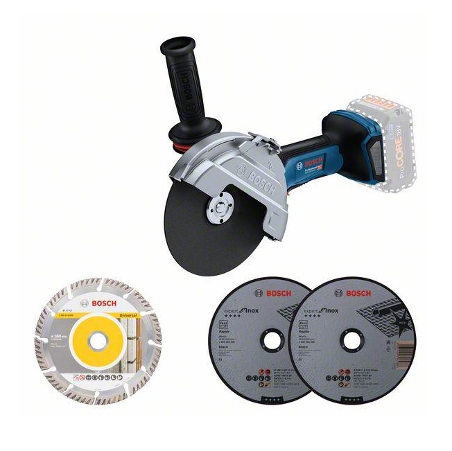 Akumulátorová úhlová bruska je kompatibilní se všemi 18V akumulátory a nabíječkami Bosch Bosch Professional 18V.