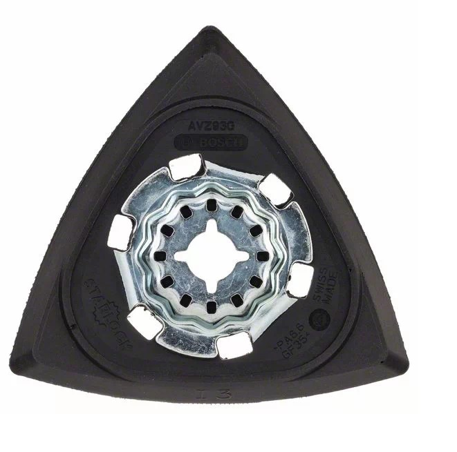 Tato brusná deska má tvar delta nebo trojúhelníkový tvar, což umožňuje přístup do úzkých nebo obtížně přístupných míst, například do rohů. Upínací systém zajišťuje maximální přenos výkonu díky trojrozměrně konstruovanému spojení mezi nářadím a nástrojem.