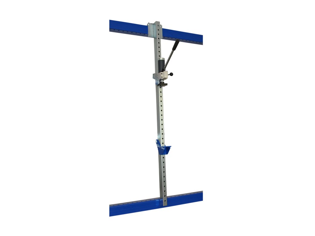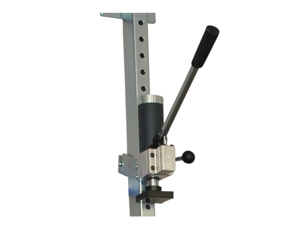 Lisovací jednotka se skládá ze svislého perforovaného sloupku, do kterého lze podle potřeby vložit lisovací jednotku a korpusové podpěry.
