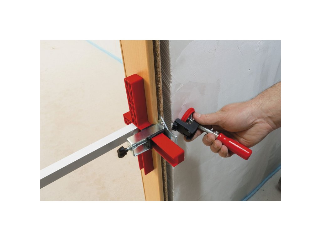 ■ K obložení využitelné upínací třmeny s větší upínací plochou a odnímatelnými výložníky pro bezpečné a snadné nasazení dveřních zárubní