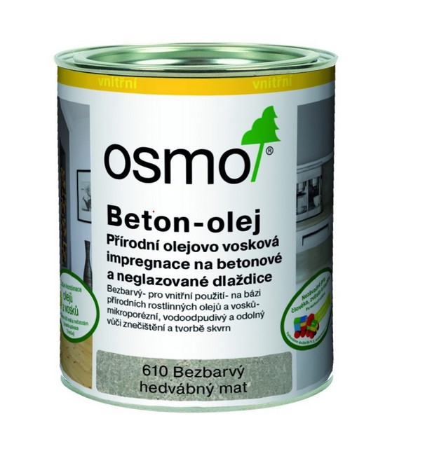 Bezbarvý hedvábně matný impregnační olej, který výjimečným způsobem kombinuje přednosti přírodních olejů a vosků v jednom výrobku. Na ošetřeném povrchu netvoří film, ale proniká póry do povrchu. Osmo Beton olejem ošetřené povrchy jsou vodoodpudivé a odolnější vůči znečištění a tvorbě skvrn. U potěru a betonů se impregnací významně snižuje tvorba prachu.