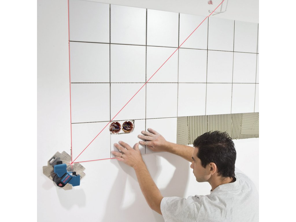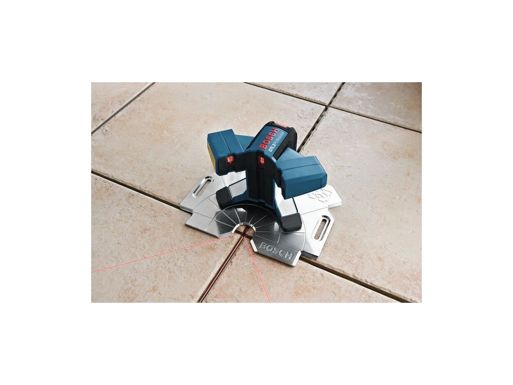 Rychlé pokládání dlaždic díky přídavné linii v úhlu 45°Kromě obou linií laserového paprsku v úhlu 90° promítá třetí linii v úhlu 45° pro