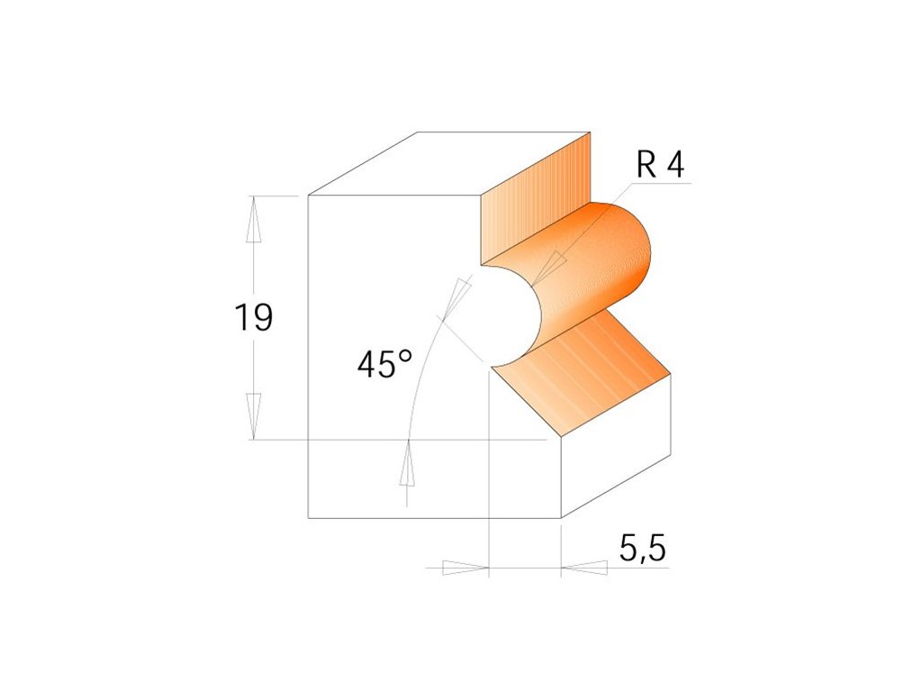 Zcela nová fréza je určena pro výrobu dekoračních obkladů interiérů. Jednoduše vytvoříte spoj na pero-drážku s okrasným rádiusem R4mm. Ideální pro výrobu obkladů stěn, stropů a zadních částí knihoven nebo skříní.