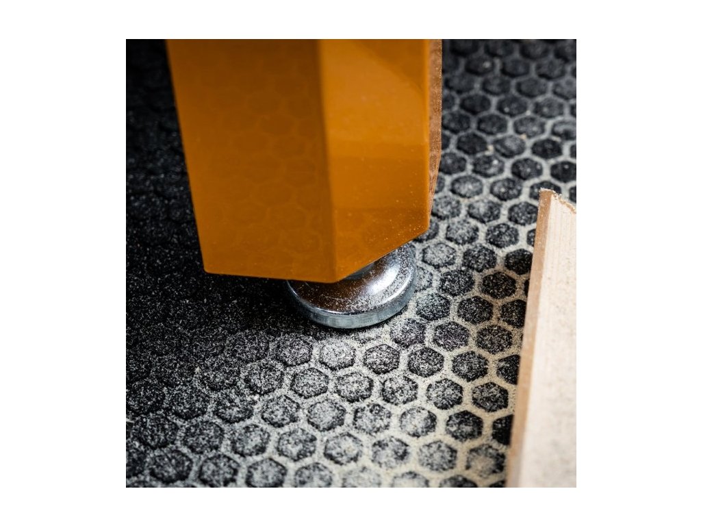 Vyměnitelná plná MDF pracovní deska s odolným laminem v matné černé barvě.