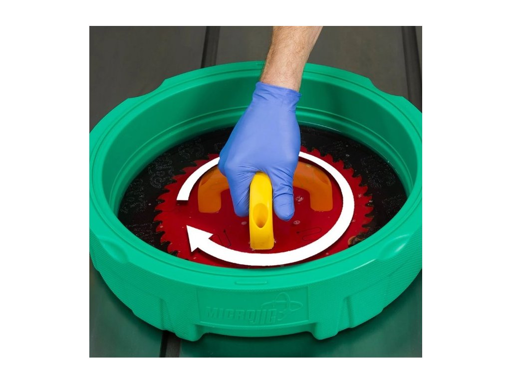 Čištění pilových kotoučů může být zdlouhavé a časově náročné. Systém BLADECLEAN zkrátí celou práci na několik minut. Rychle vyčistíte celou stranu pilového kotouče jediným pohybem a bez použití agresivních chemikálií. Systém bezpečně uzavře čištící kapalinu či chemii, takže ji lze uložit pro pozdější použití. Až budete příště potřebovat vyčistit pilový kotouč nebo bit, stačí buben jenom otevřít