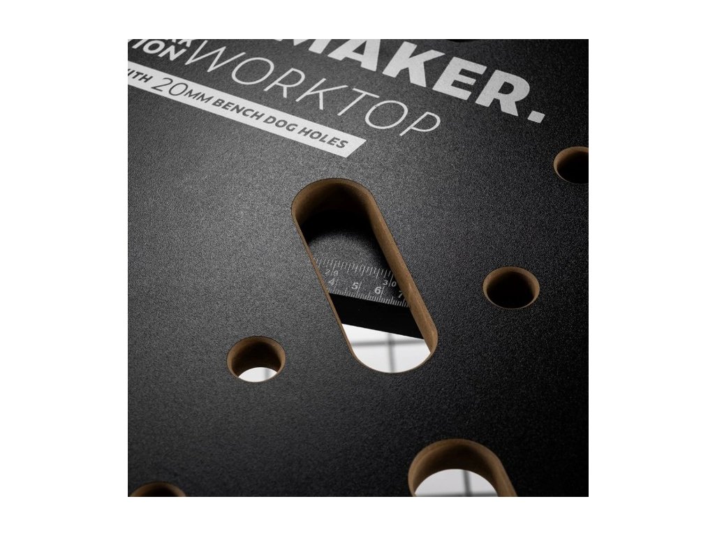 Pevná náhradní pracovní deska CRAFTMAKER Worktop s 20 mm otvory. Je určená pro multifunkční skládací stůl CRAFTMAKER Work Station T800. Rychlá výměna a můžete pokračovat v práci na vašem projektu. Pro potřeby měření je po obou delších stranách desky natištěná metrická stupnice v milimetrech.