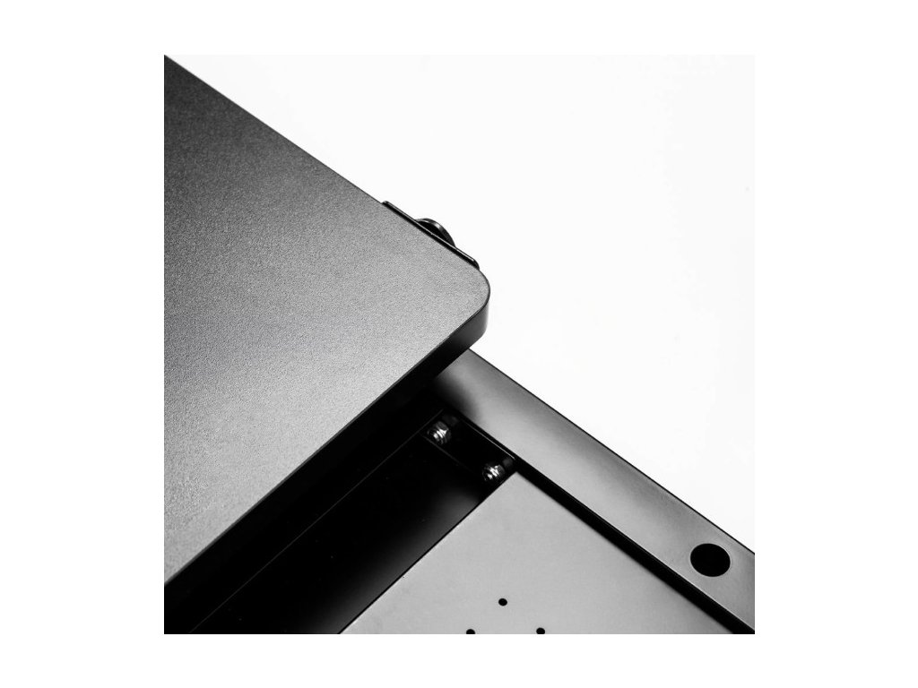 Vyměnitelná MDF pracovní deska s odolným laminem v matné černé barvě.
