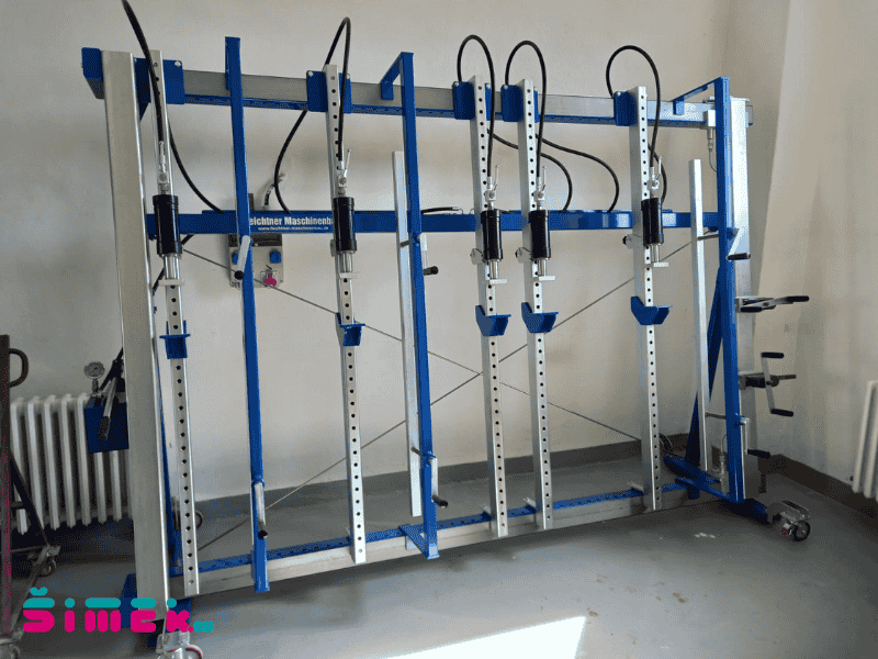 Pro tuto zakázku byl vyroben v konfiguraci jak pro lisování rámových konstrukcí, spárovek, tak i nábytkových korpusů. Konstrukce tedy umožňuje velmi univerzální využití.