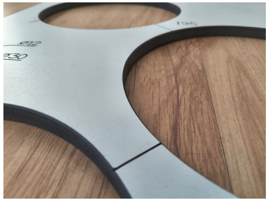 Šablona pro výřez kulatých otvorů ve velikostech 175 - 190 mm.
