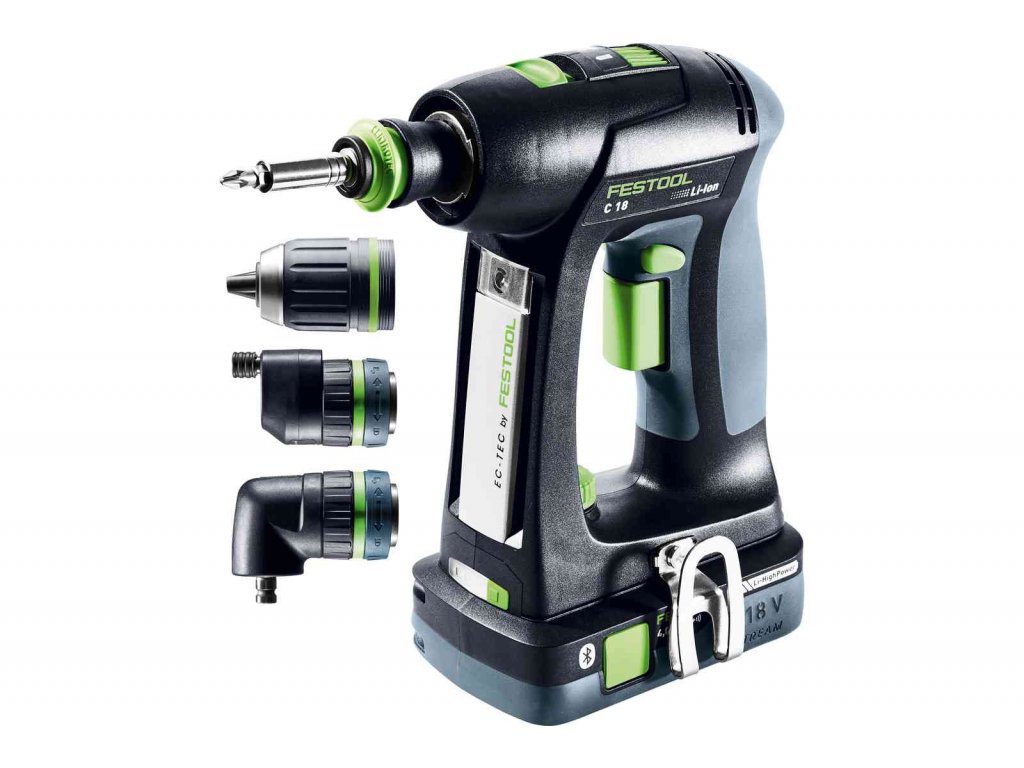Pro naprostou flexibilitu při vrtání a šroubování: plně elektronické nastavení krouticího momentu, rychlovýměnný systém CENTROTEC, úhlový a excentrický nástavec a hloubkový doraz zvládnou každé vrtání a šroubování. Díky kombinaci akumulátoru Li-HighPower a bezuhlíkového a tedy bezúdržbového motoru EC-TEC je akumulátorový vrtací šroubovák C 18 lehký a vyznačuje se dlouhou životností a výdrží. Pro bezstarostnou každodenní práci je akumulátorový šroubovák a akumulátor kompletně zabezpečený službami Festool SERVICE. Je dostupný s jedinečnou konstrukcí C nebo – podle individuální preference – také jako T 18+3 s konstrukcí T.