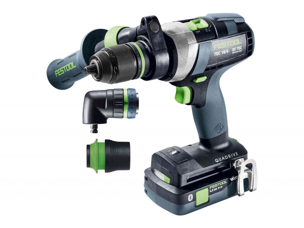Výkonný. Mnohostranný. Se 4 stupni pro každé použití. S nejlepší koncepcí spínače, který jste kdy ovládali. Nezáleží na tom, zda se jedná o dřevo, nebo kov: TDC splňuje ty nejnáročnější požadavky a díky bezuhlíkovému motoru EC-TEC se vyznačuje mimořádnou zatížitelností a výdrží. Díky četným nástavcům a kombinaci s perfektně sladěným příslušenstvím představuje QUADRIVE nedostižný vrtací šroubovák pro nejrůznější možnosti použití. A nebezpečné zkroucení zápěstí při náhlém zablokování nástroje? Naše inteligentní funkce KickbackStop minimalizuje riziko, že to zajde tak daleko. Vyzkoušej ho: Nejlepší vrtací šroubovák, který firma Festool kdy vyrobila!