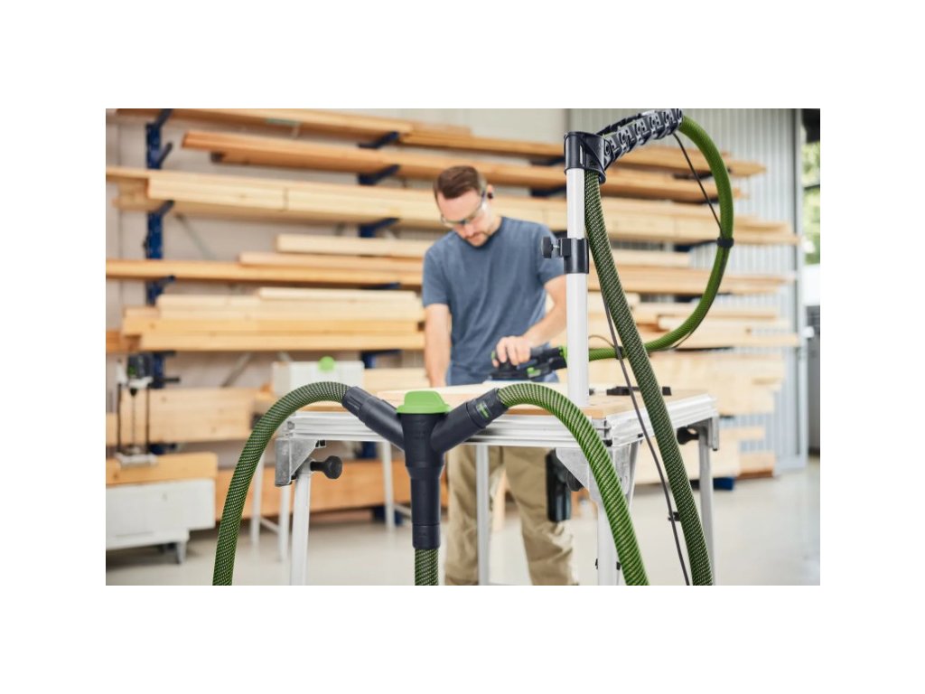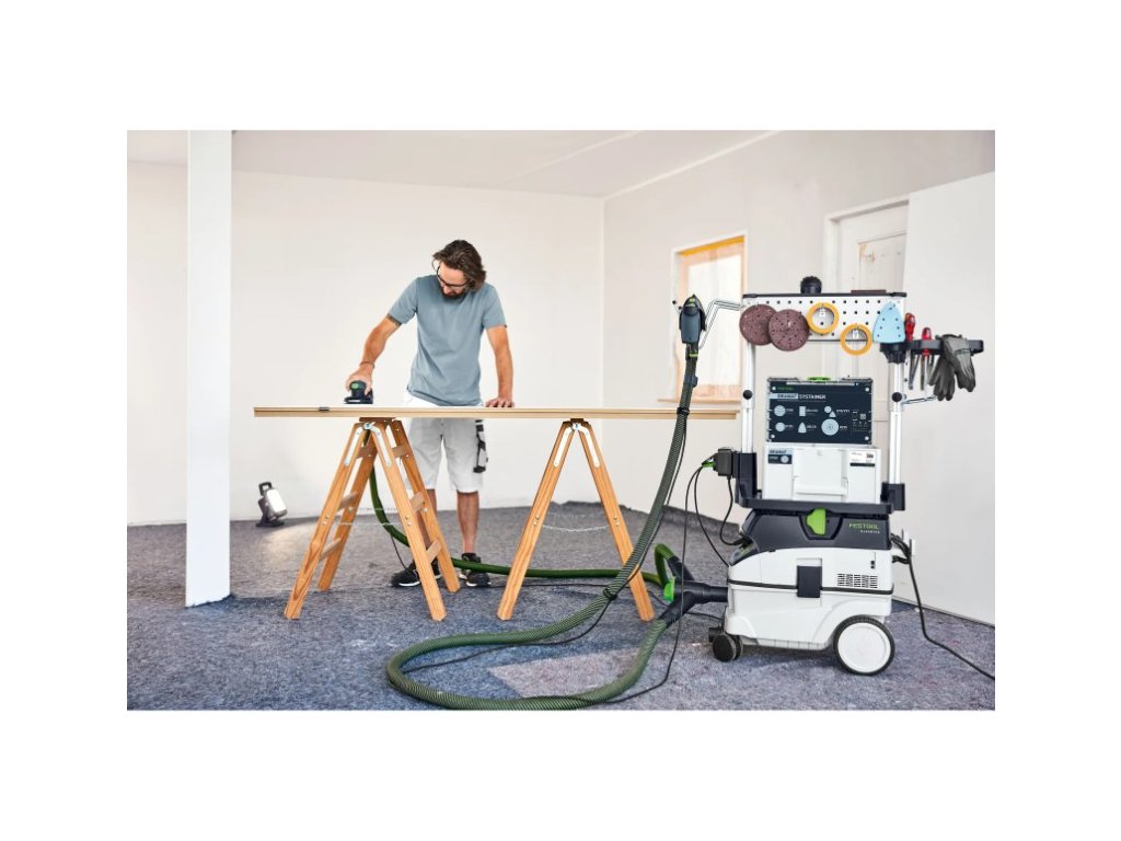 Čistá práce se systémem: kompatibilní s mnoha modely vysavačů Festool a četným příslušenstvím, jako je odsávací rameno, modul elektrické zásuvky nebo pracovní centrum.