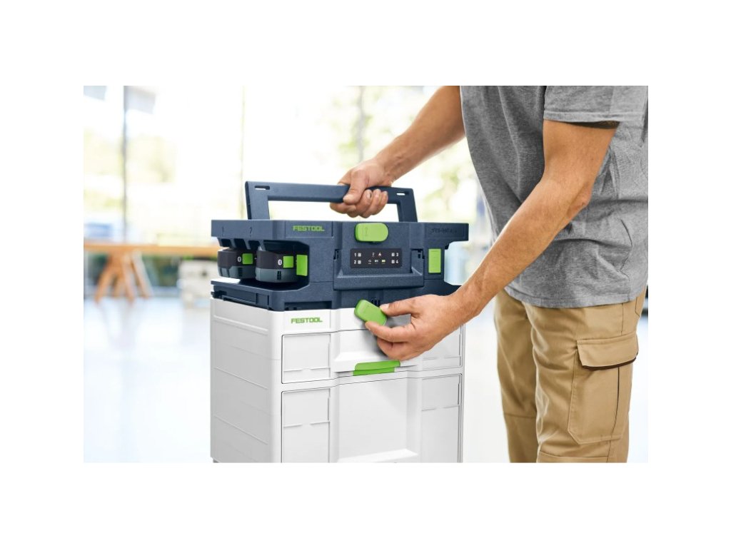 Vícenásobná nabíječka posouvá řízení akumulátorů na vyšší úroveň. Můžete nabíjet až čtyři akumulátory najednou, ušetřit čas a místa v zásuvce a mít vše centrálně uspořádané a na očích. Akumulátory jsou přístupné ze všech stran – pro rychlý přístup a maximálně komfortní ovládání. Díky kompletní integraci Systainerů zůstane pracoviště uklizené – ať už v dílně, ve vozidle, nebo na stavbě.