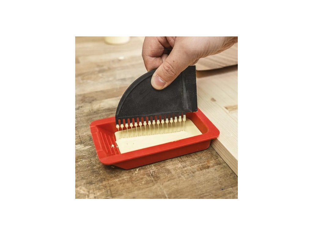 Silikonové štětce pro pohodlné nanášení lepidla na dřevo. Dvě velikosti štětců včetně silikonové stěrky a vaničky pro univerzální použití. Snadno čistitelné.