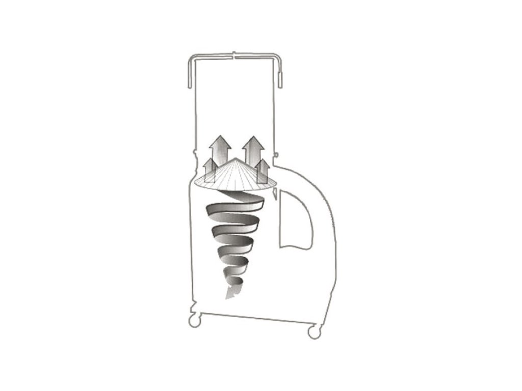 Vortex Cone – jedinečná technologie pro vysoký odsávací výkon - technologie oddělování částic s účinností až 98 %.Eliminuje zanesení filtru a následné zdravotní problémy při ručním čištění. Odstraňuje náhlý pokles výkonu kvůli předčasnému ucpání filtru a výrazně zlepšuje účinnost. Zajišťuje rychlý pád prachu do odpadního vaku, aniž by docházelo k ucpávání filtru.