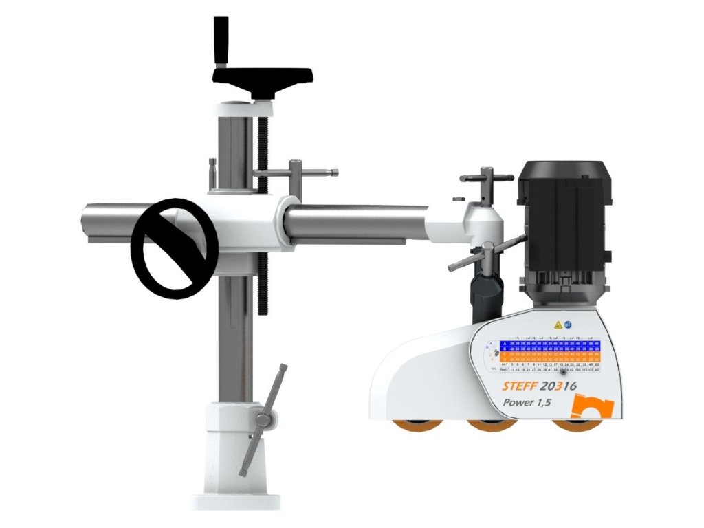 Řada podávacích zařízení STEFF je vyráběna firmou MAGGI ENGINEERING již od roku 1969 - dodnes se vyrobilo více než 400.000 ks. Model STEFF 20316 je určený pro posuv okenních a dveřních vlysů, jeho robustní kontstrukce a výkonný motor zaručí vysokou stabilitu a plynulý chod i při podávání dlouhých a těžkých dílců. Čtyři odpružená podávací kola ideálně rozloží přítlačnou sílu na materiál, dvě kola před nástrojem a dvě za nástrojem zajistí precizní opracování frézovaných kusů, bez náběhových hran.