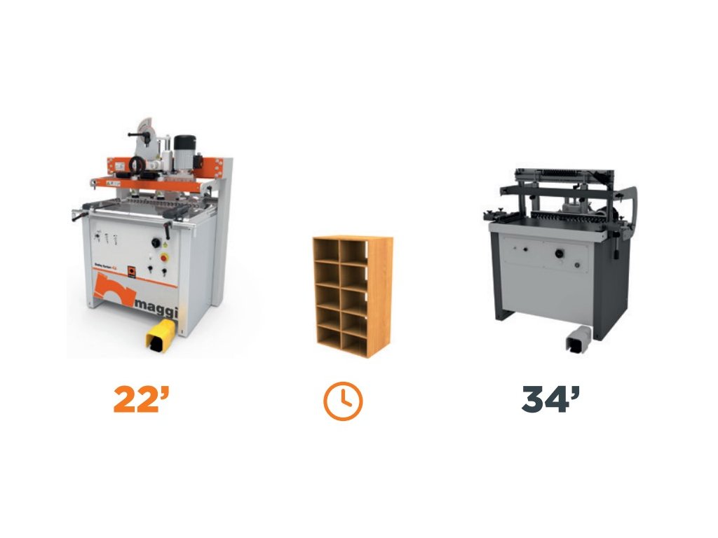100 % efektivita - zkrácení pracovní doby na polovinu při srovnání s jednovřeteníkovou kolíkovačkou. Kombinované vertikální a horizontální vrtání v jednom pracovním cyklu, bez dalších úprav. Ušetřete čas a zvyšte zpracování přesnost.