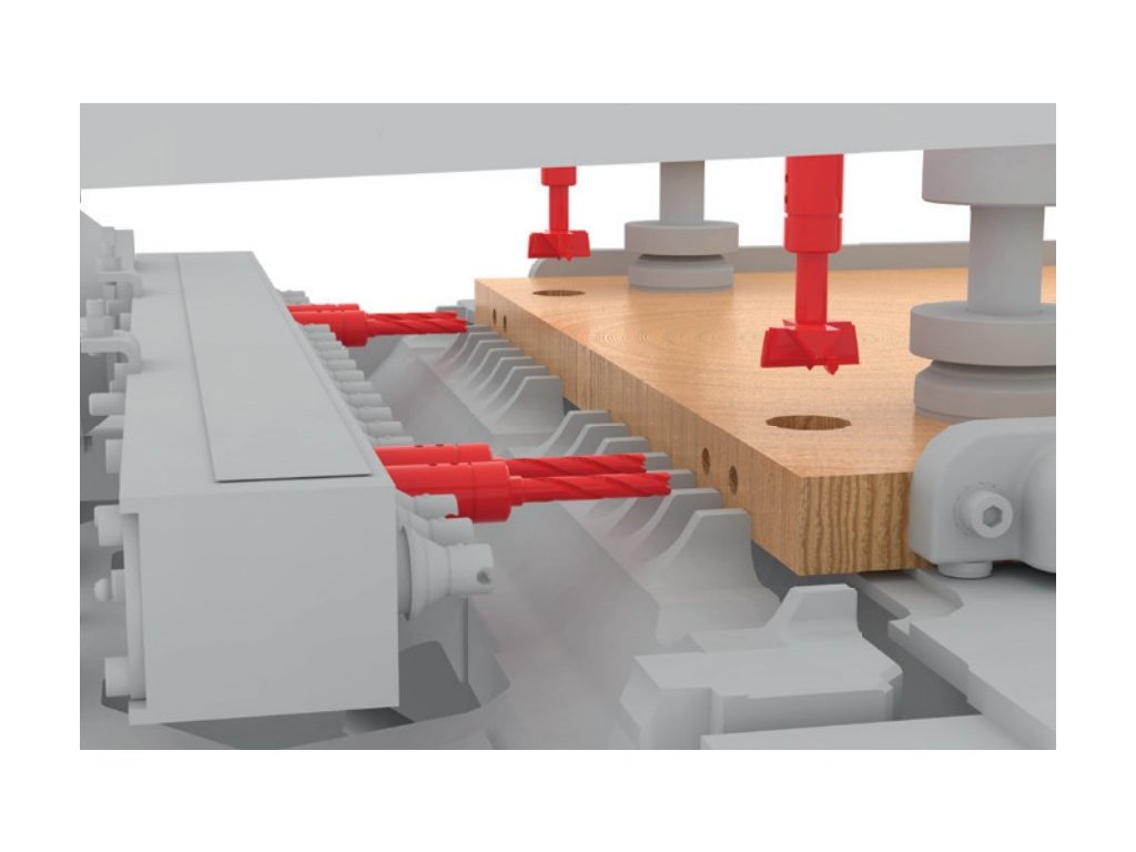 Pro kombinované vertikální a horizontální vrtání. Ideální pro výrobu masivních dřevěných panelů a nábytku.