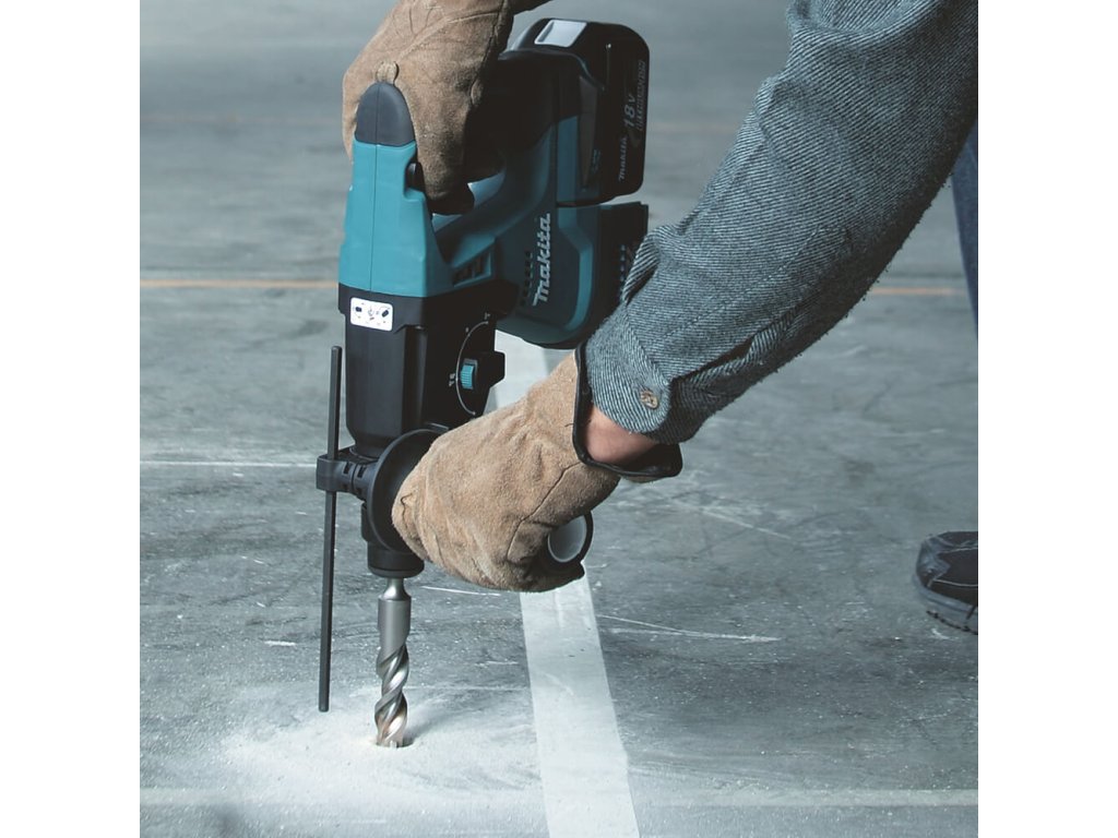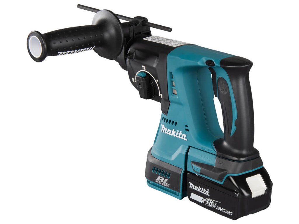 Kombinované kladivo s bezuhlíkovým motorem umožňujícím delší práci na jedno nabití akumulátoru.