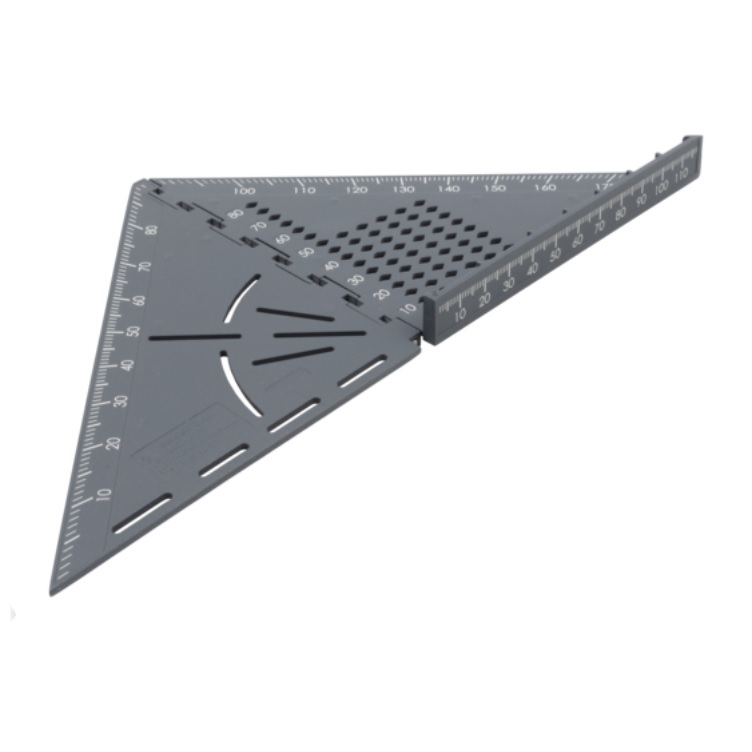 +Milimetrová stupnice, zarážky pro úhly 45° a 90° a stupnice pro libovolný úhel od 0° do 180° umožňují přesné vyrovnání a přesné značení. Kromě toho lze úhelník pro měření a značení použít jako vytyčovací měrku pro vytyčování dokonalých rovnoběžných čar.