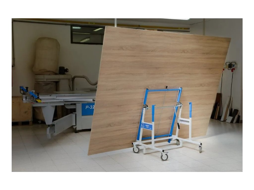 Manipulační vozík MINIPROF LIFTER je určený pro snadné přemístění, překlopení plošných materiálů ze svislé do vodorovné polohy a pro jejich jednoduché umístění na vozíky formátovacích pil, pracovní stoly apod.Nastavení vodorovné výšky vozíku od 800 – 1000 mm (vždy po 20 mm) dle výšky pracovního stolu, vozíku formátovací pily apod.