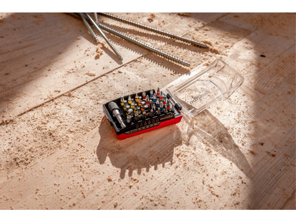 Metabo sada 32 barevných bitů v boxu ve tvaru baterie