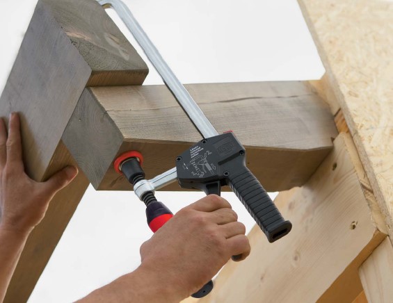 - upnutí materiálu při vytváření kolmých konstrukcí ze dřeva je specializací Pravoúhlých svěrek Bessey,