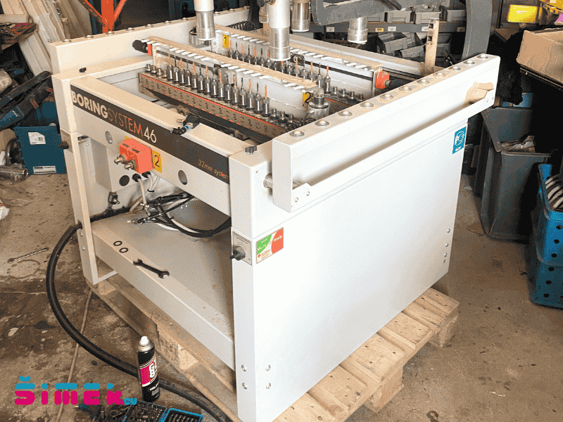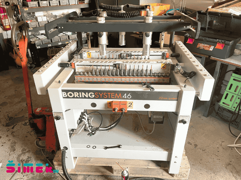 Boring 46 je univerzální kolíkovačka se dvěma vřeteníky pouze pro vertikální vrtání. Jedná se o ideální stroj pro řadové vrtání (např. podpěrek) do plochy nábytkových dílců. Díky dvěma vřeteníkům, každý je osazen 23-ti vřeteny, je BORING 46 velmi produktivní. Nezávisle poháněné vřeteníky umožňují vrtat současně nebo jednotlivě řady otvorů.