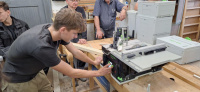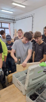 Bc. Petr Sysel, vedoucí učitel odborného výcviku oborů truhlář, aranžér: "Během předváděcí akce se naši žáci aktivně zapojili a rychle ztratili ostych. Pak už každý, kdo chtěl, držel v ruce některý z černozelených strojů a vrtal, šrouboval, frézoval, hobloval, řezal i brousil. Kluci nešetřili obdivem a zdálo se, že by si mnohý z nich přál takový dárek pod stromeček. A třeba ho tam nakonec někdo mít bude. Díky vstřícnému programu pro školy od firmy Festool má i naše škola pro výuku k dispozici kolíkovací frézku s vysavačem, zakoupené od dlouholetého partnera Šimek proficentrum s. r. o."