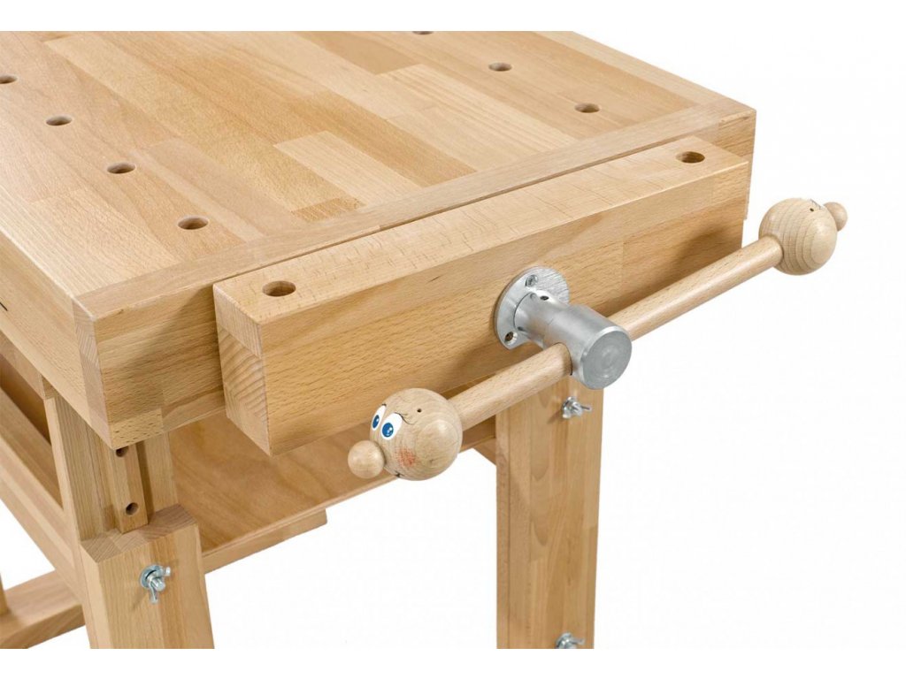 Model dětské výškově stavitelné hoblice je vyroben z cinkované bukové spárovky nejvyšší kvality. Tato hoblice je určena pro děti od 3 (4) do 12-ti let. Je určena pro vybavení základních a mateřských škol i jako hobby hoblice pro domácí použití. Díky výškově stavitelnému podnoží je možné hoblici velice snadno přizpůsobit věku a výšce dítěte. Nejnižší pracovní výška je 620mm. Jednoduchým přestavením po 50mm, je možné využít ještě výšky 670mm ,720mm, a 770mm. Hoblice je vybavena přední a boční příložkou s kovovým vřetenem a dřevěnými pojezdovými tyčemi. Pro snadné otevírání je použit dřevěný dekorativní klíč. Hoblice je dodávána se čtyřmi ks bukových poděráků. S dřevěným poděrákem nehrozí zranění Vašeho dítěte. V ploše plátu je, křížově ve dvou řadách, 20 otvorů pro poděráky tak, aby je bylo možné využít pro obě pracovní pole. Ve spodní části podnoží je odkládací police pro odložení nářadí, výrobků nebo hraček. Praktickým doplňkem je pak volná zasouvací tabule, vhodná pro kreslení křídami. Hoblice je dodávána v demontovaném stavu s podrobným návodem na sestavení.• vyráběno ve 2 velikostech,