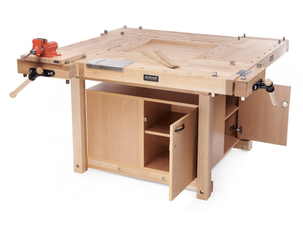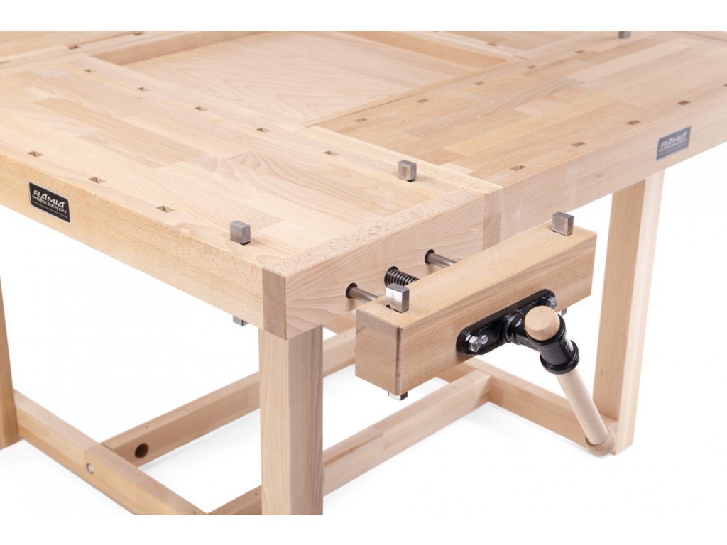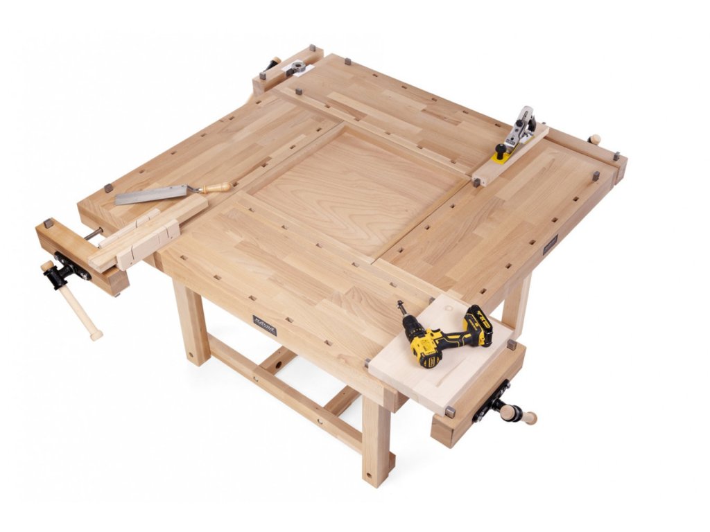 Tento model je pro své rozměry určen do větších dílen. Je vyroben z vysoce kvalitní bukové spárovky pro vysokou zátěž, maximální odolnost a dlouhou životnost hoblice. Hoblice má čtyři vřetena s cenrálním šroubem a dvěmi vodícími lištami, které zaručují pevné a přesné vedení. Svěráky jsou 380mm široké a 70mm dlouhé. Hoblice je vyrobena ze čtyř samostatných plátů, každý má 12 děr pro poděráky ve dvou řadách, což nabízí možnost uchycení materiálu o nejrůznějších rozměrech. Uprostřed hoblice je čtverec 600x600mm, který při otočení může sloužit jako koryto pro odložení nářadí nebo zbytků matriálu. Jako příslušenství lze zaskoupit 1 nebo 2 uzamikatelné skříně pod hoblici, které nabízejí dostatek prostoru pro odložení méně používaného nářadí.• hoblice pro 4 osoby,