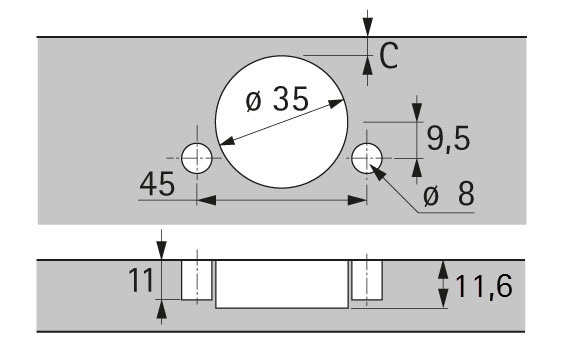 Miskové závěsy  >  Sensys miskový závěs  >  Závěsy s integrovaným tlumením  >  90° konstrukce  >  Sensys 165°, závěs s nulovým přesahem  >  Polonaložené