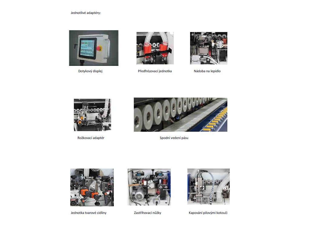 Předehřívaná podávací lišta. 0,4kW (v případě že je dílec příliš vlhký díky špatným povětrnostním podmínkám, toto zařízení ho pomáhá vysušit, aby mohlo být dosaženo kvalitního přilepení hrany).