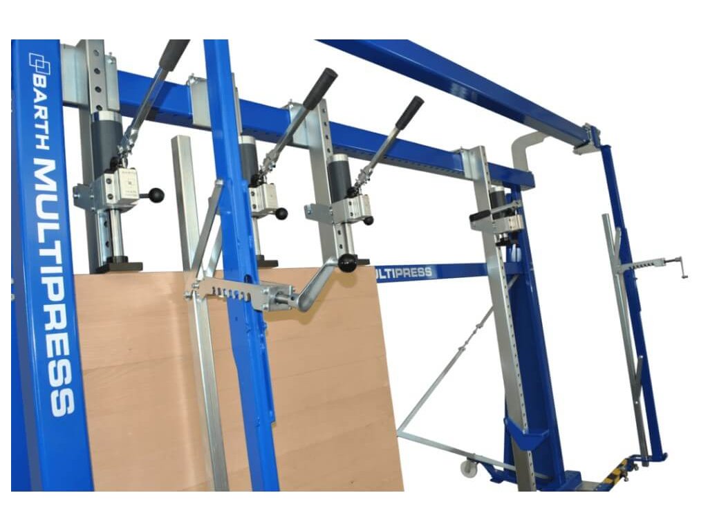 Modelová řada lisů RPG-NH se vyznačuje předsazeným rámem s kuličkovými ložisky, na kterém se pohybují svislé jednotky pro lisování spárovky - pryč jsou doby, kdy jste museli tyto jednotky z lisu pracně sundavat, abyste mohli provádět jiné druhy lepení. Páky hydraulických válců na svislých jednotkách jednodušše sklopíte a můžete s jednotkami na spárovku popojet, kam potřebujete.