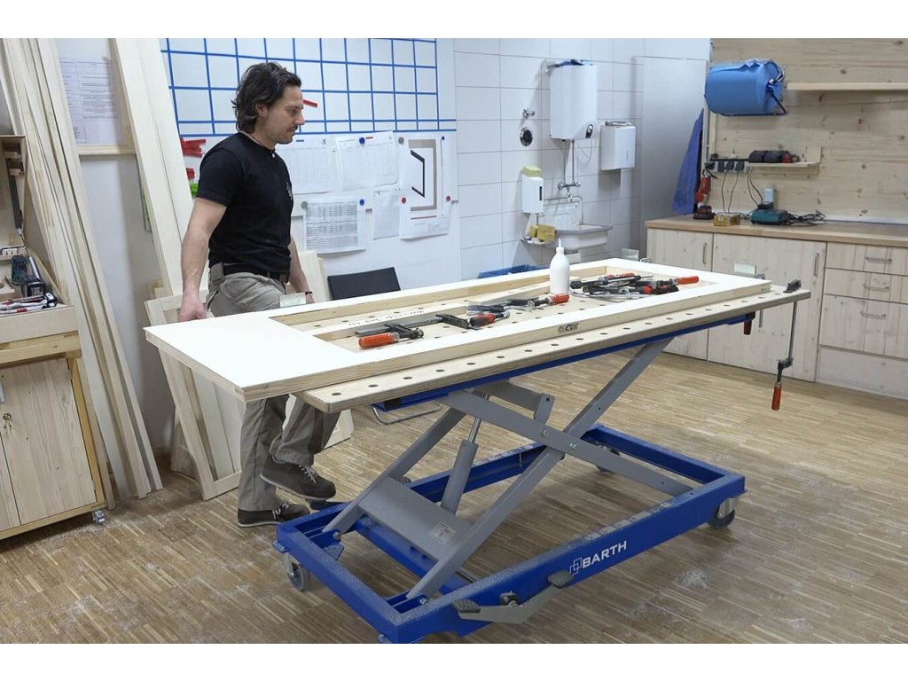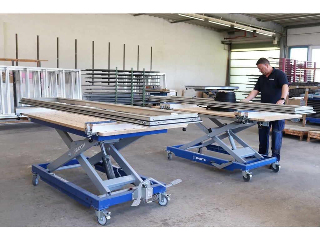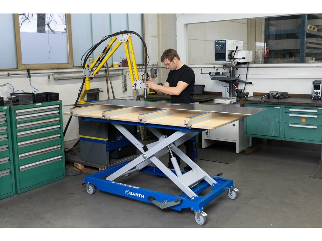 Barth výškově přestavitelný mobilní stůl H 400 XL s pracovní deskou 2000 x 1015 x 24 mm