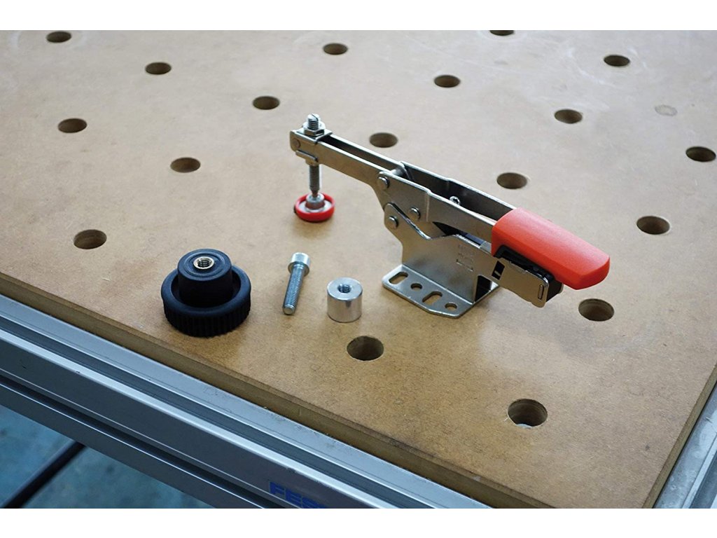 Pro použití rychloupínačů od BESSEY na multifunkčních stolech jako např. Festool MFT a Sortimo WorkMo s průměrem otvoru 20 mm a tloušťkou desky min. 19 mm až max. 25 mm