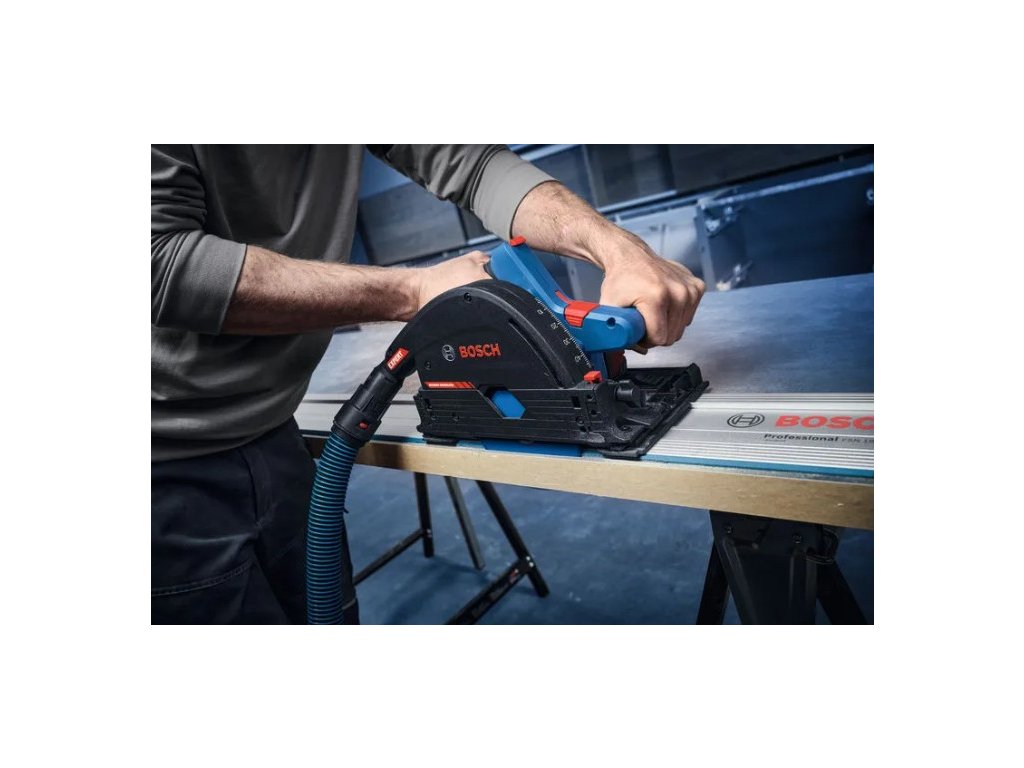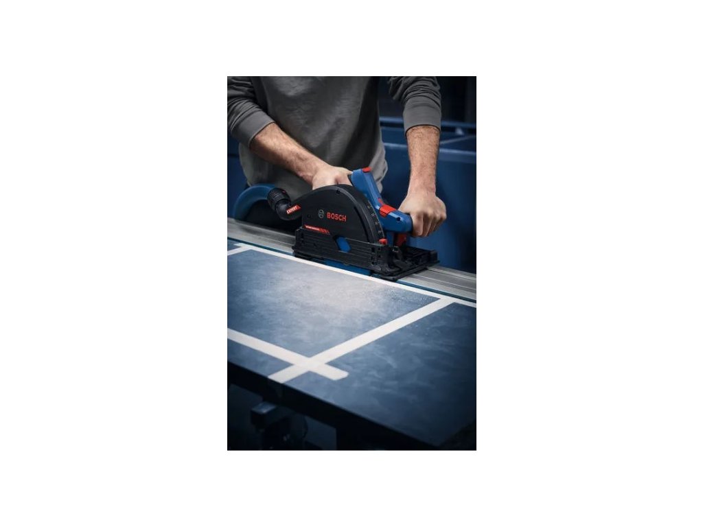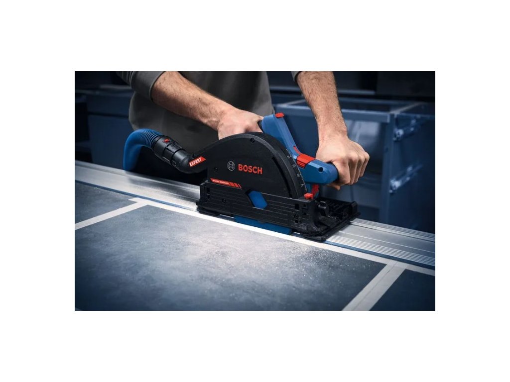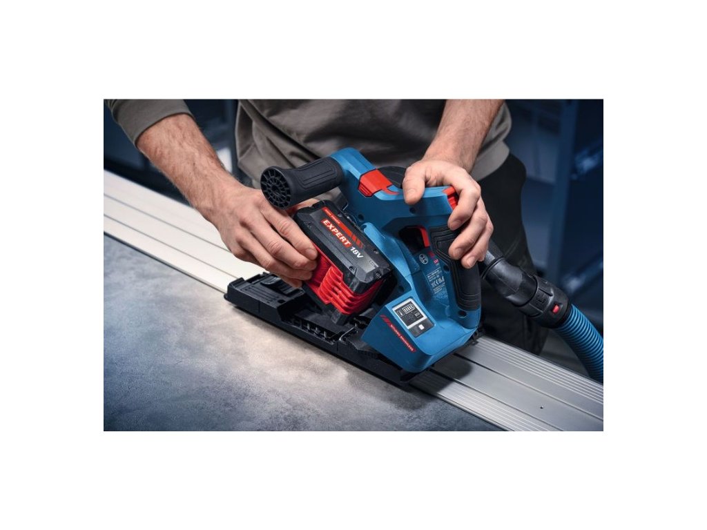 Ponorná pila EXKT18V-52G EXPERT má extrémně kompaktní konstrukci, která umožňuje minimální vzdálenost od stěny a řezy pouhých 10 mm od stěny. Vestavěný bezuhlíkový vysoce výkonný motor BITURBO a systém hnacího ústrojí jsou navrženy tak, aby v kombinaci s akumulátory EXPERT dosahovaly výjimečné výkonnosti. Tato kompaktní ponorná pila jen s jedním 18V akumulátorem umožňuje špičkovou mobilitu. Integrovaný adaptér Click&Clean byl navržen pro řešení zachytávání prachu Bosch. Lze s ní snadno manévrovat a otáčet o 360 stupňů. EXKT18V-52G EXPERT je kompatibilní s naší vynikající vodicí lištou BOSCH FSN a dalšími běžnými systémy. Uživatelsky přívětivé rozhraní HMI má různé možnosti nastavení: Volba rychlosti, volba režimu (např. režim ECO pro delší dobu běhu na jedno nabití akumulátoru), stejně jako displeje pro nabití akumulátoru a stav zařízení – jako je ochrana proti přetížení.
