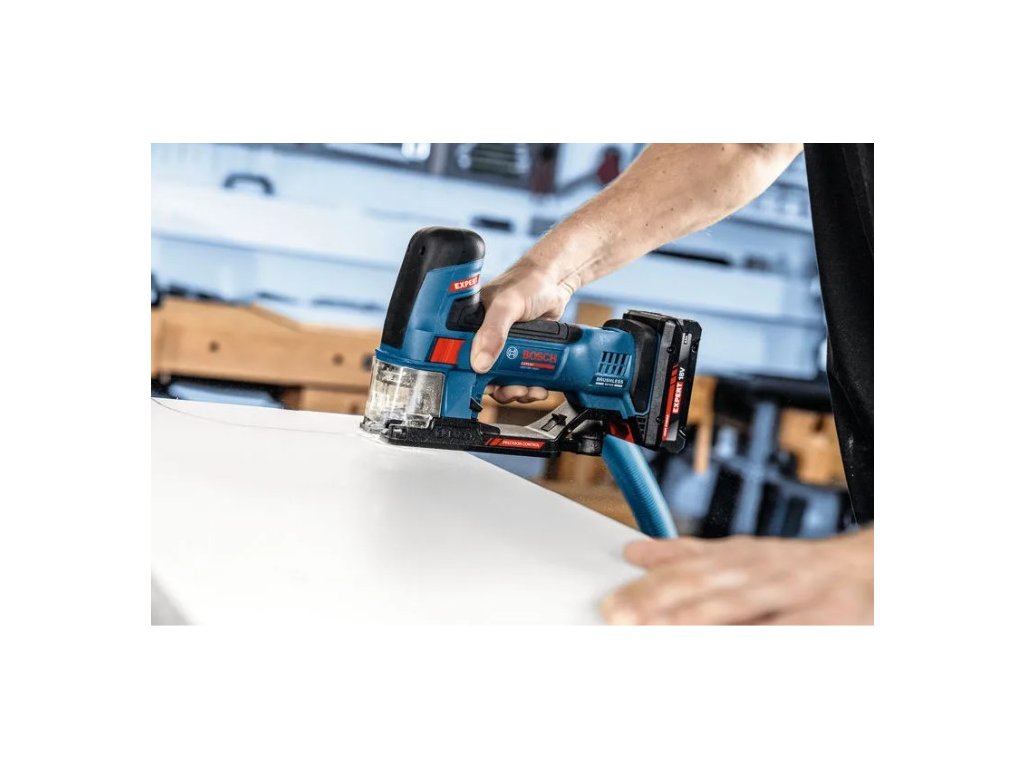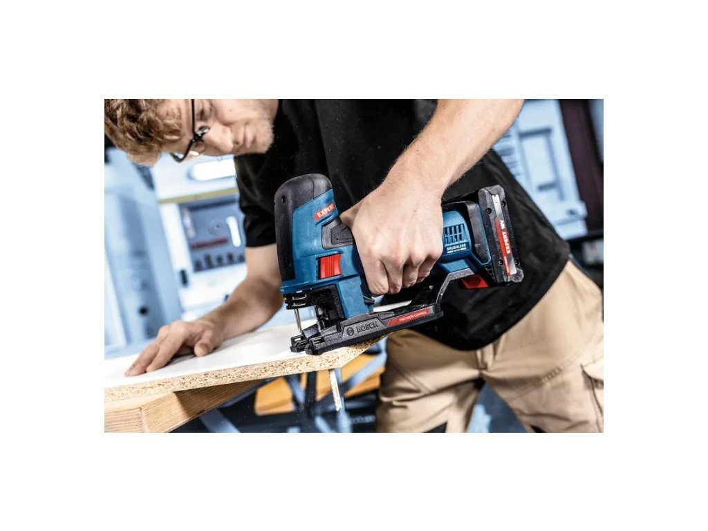 Až 4× přesnější než GST 18V-125 Professional. Je ideální na zaoblené i příčné řezy do tvrdého dřeva, dřevotřísky a dřevěných kompozitů i na silnější a tvrdší materiály. Kompatibilní s 18V systémem Bosch Professional a aliancí akumulátorů různých značek AMPShare.