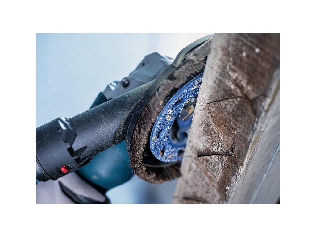 Při práci s úhlovou bruskou a hrncovým kotoučem nemůžete vidět postup práce, pokud se na chvíli nezastavíte. Díky nové otevřené konstrukci umožňuje robustní karbidový hrncový kotouč EXPERT Multi Material sledovat materiál během broušení. To znamená, že můžete pracovat s menším počtem přerušení a efektivněji provádět renovační a dekorační práce.