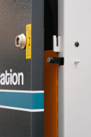 - bezpečnostní zámky dvířek a vypínačů kvůli neoprávněnému vniknutí nebo zapnutí stroje;