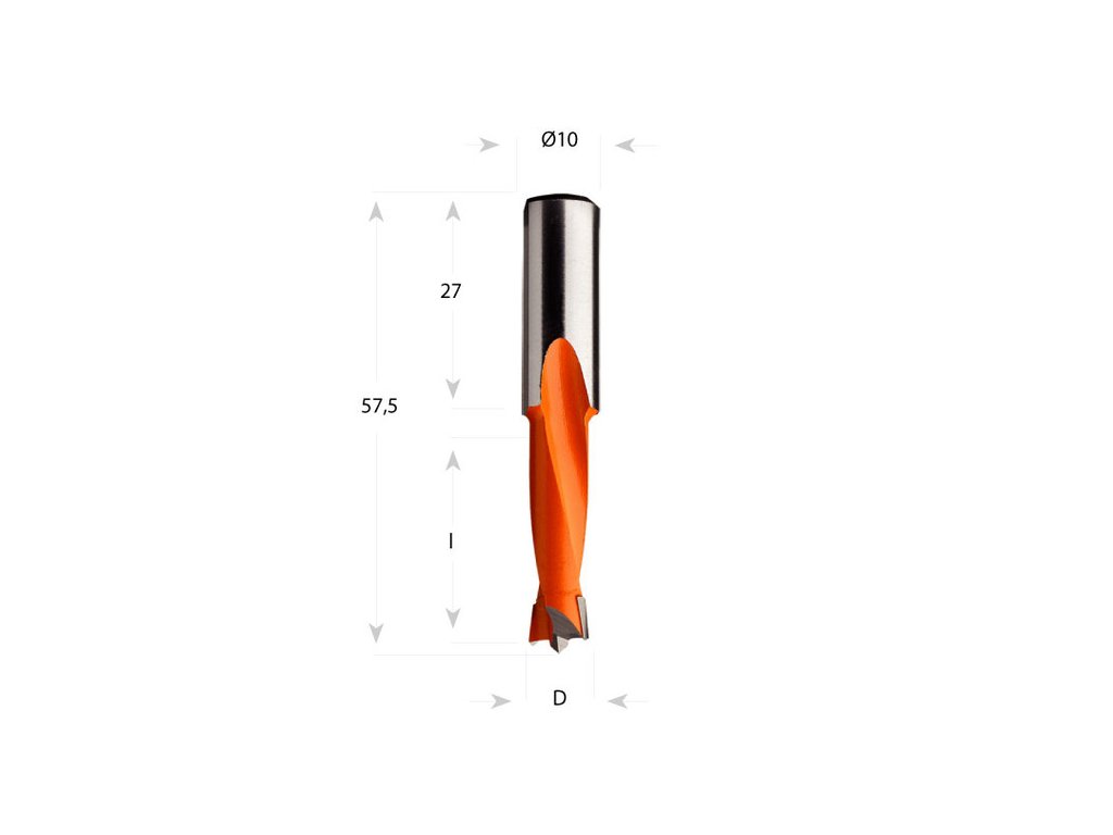Kolíkovací vrták pro neprůchozí otvory - 2 spirálové drážky S=Ø10x27mm L=57,5 mm