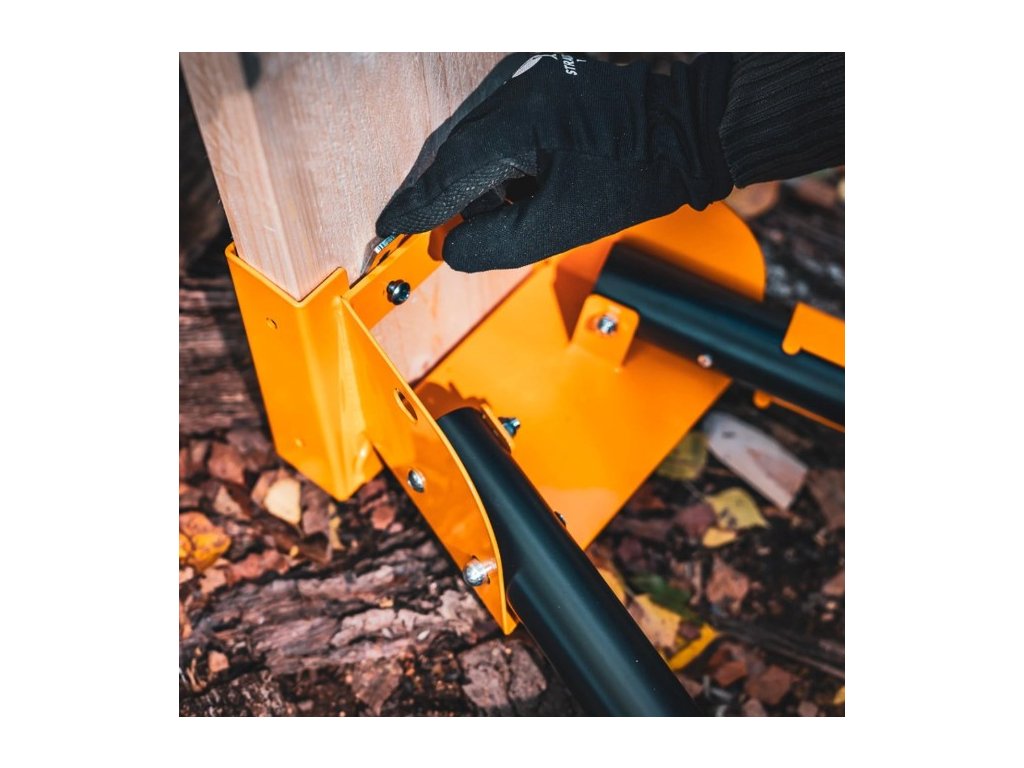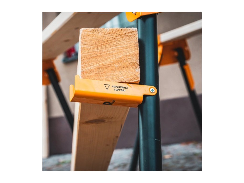Oceníte možnost výměny nosné fošny, případné nastavení rozmístění čelistí - lze je snadno díky přidaným vrutům polohovat. Dále budou přínosem výklopné žluté packy na materiál. Když demontujete ocelové čelisti z Vaší dřevěné základny, můžete kozu W40 použít jako provizorní pracovní stůl nebo podpůrné pracovní kozy libovolné délky. Snadno je rozložíte i složíte. Maximálně připravena na těžkou práci - s nosnotí až 150 kg materiálu na ni můžete naložit pořádnou kulatinu. Sama o sobě je přitom lehká, protože váží pouhých 10 kg, takže se s ní velmi snadno manipuluje. Můžete ji opakovaně zcela rozložit na jednotlivé díly. Navíc jí můžete libovolně zesílit montáží několika fošen na sebe, nebo prodloužit díky vložení delšího prkna. Záleží pouze na Vaší představivosti a možnostech.