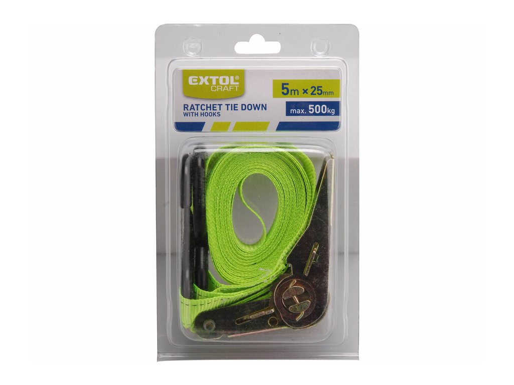 Extol Craft Pás upínací ráčnový s háky, 5m x 25mm, max. 500kg