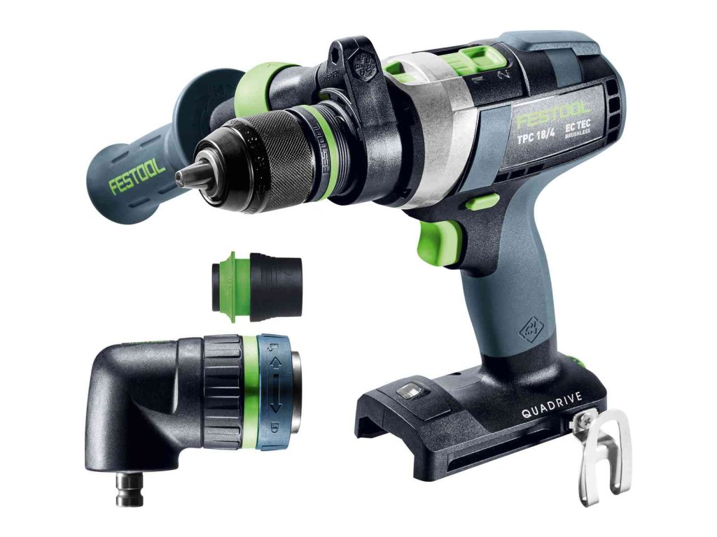 Výkonný. Mnohostranný. Se 4 stupni pro každé použití. S nejlepší koncepcí spínače, který jste kdy ovládali. Nezáleží na tom, zda jde o dřevo, kov, nebo díky zapínatelnému axiálnímu příklepu i zdivo: TPC splňuje ty nejnáročnější požadavky a díky bezuhlíkovému motoru EC-TEC se vyznačuje mimořádnou zatížitelností a výdrží. Díky četným nástavcům a kombinaci s perfektně sladěným příslušenstvím představuje QUADRIVE nedostižný příklepový vrtací šroubovák pro nejrůznější možnosti použití. A nebezpečné zkroucení zápěstí při náhlém zablokování nástroje? Naše inteligentní funkce KickbackStop minimalizuje riziko, že to zajde tak daleko. Vyzkoušej ho: Nejlepší příklepový vrtací šroubovák, který firma Festool kdy vyrobila!