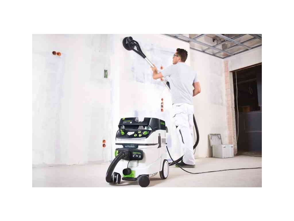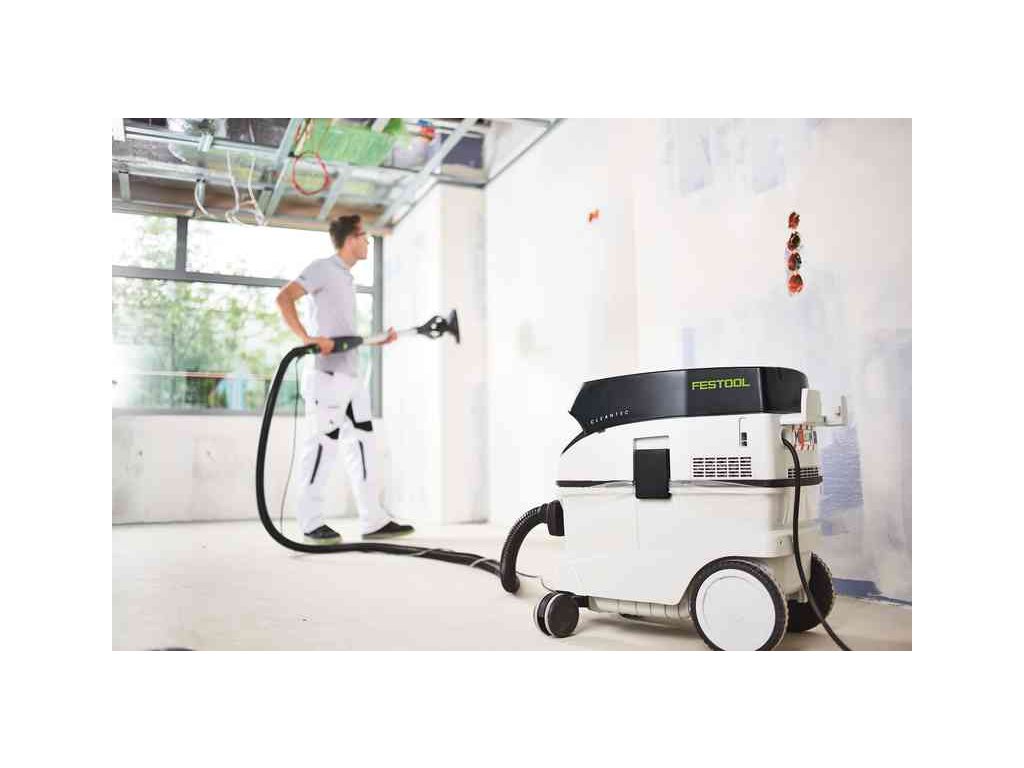 Mimořádně výkonný speciální vysavač Planex zabezpečuje optimální odsávání velkého množství prachu, které vzniká u nové brusky Planex easy. Vysavač zabezpečuje díky systému čištění filtru konstantně vysoký odsávací výkon: póry filtru se čistí bez přerušení práce. Jednoduše delší broušení: první bruska s dlouhým krkem od firmy Festool bez smontovávání a nastavování. Vyvážený poměr vedení a dobrého rozložení hmotnosti umožňuje vytrvalou práci. Nejlehčí bruska s dlouhým krkem s přímým pohonem na trhuBroušení stropů a stěn. Broušení sádrokartonu a stěrky na sádrokarton. Odstraňování zbytků tapet, barevných nátěrů, zbytků lepidla, uvolněné omítky a dalších vrstevbrusný talíř StickFix LHS-E Ø 215 mm, mobilní vysavač CTL 36 E AC-LHS