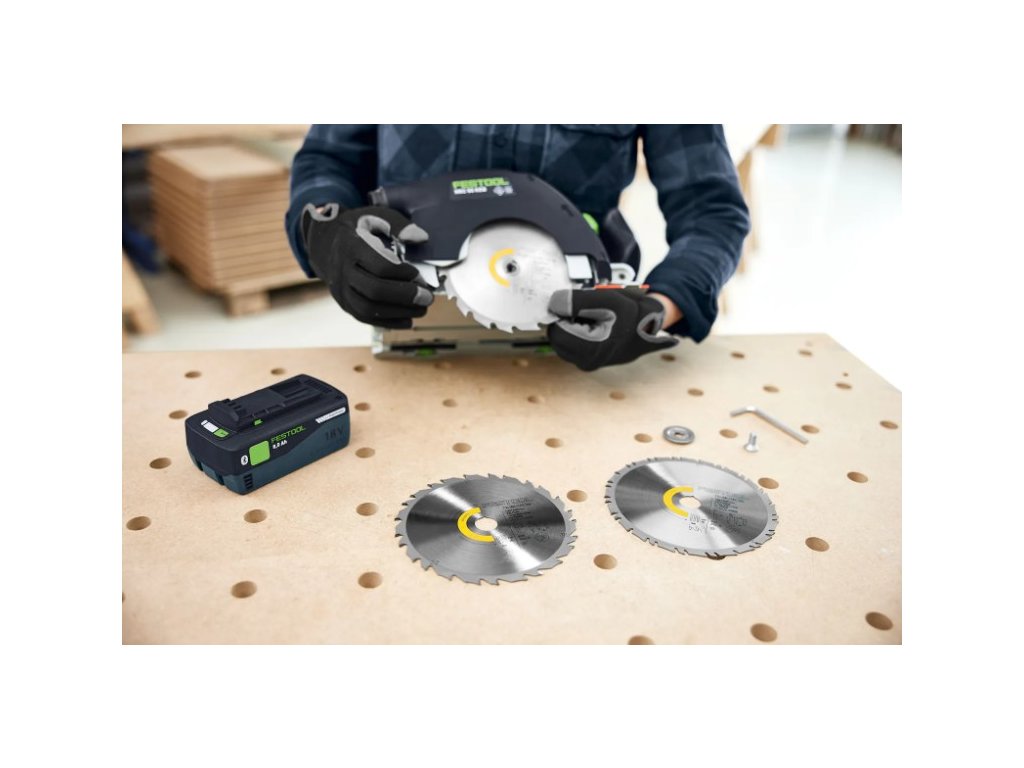 Univerzální pomocník pro obrábění všech druhů dřeva, dřevěných materiálů a desek ze stavebních materiálů. Pilové kotouče na tenké řezy 1,6 mm byly vyvinuty speciálně pro akumulátorové ruční okružní pily. Jsou z vysoce kvalitní oceli a s pilovými zuby z nejjemnějšího slinutého karbidu. Speciální ozubení se skládá z pěti skupin po pěti zubech. Kombinace čtyř po sobě jdoucích střídavých zubů a plochého zubu zajišťuje optimální řezný výkon a umožňuje dosáhnout dokonalých výsledků řezání.
