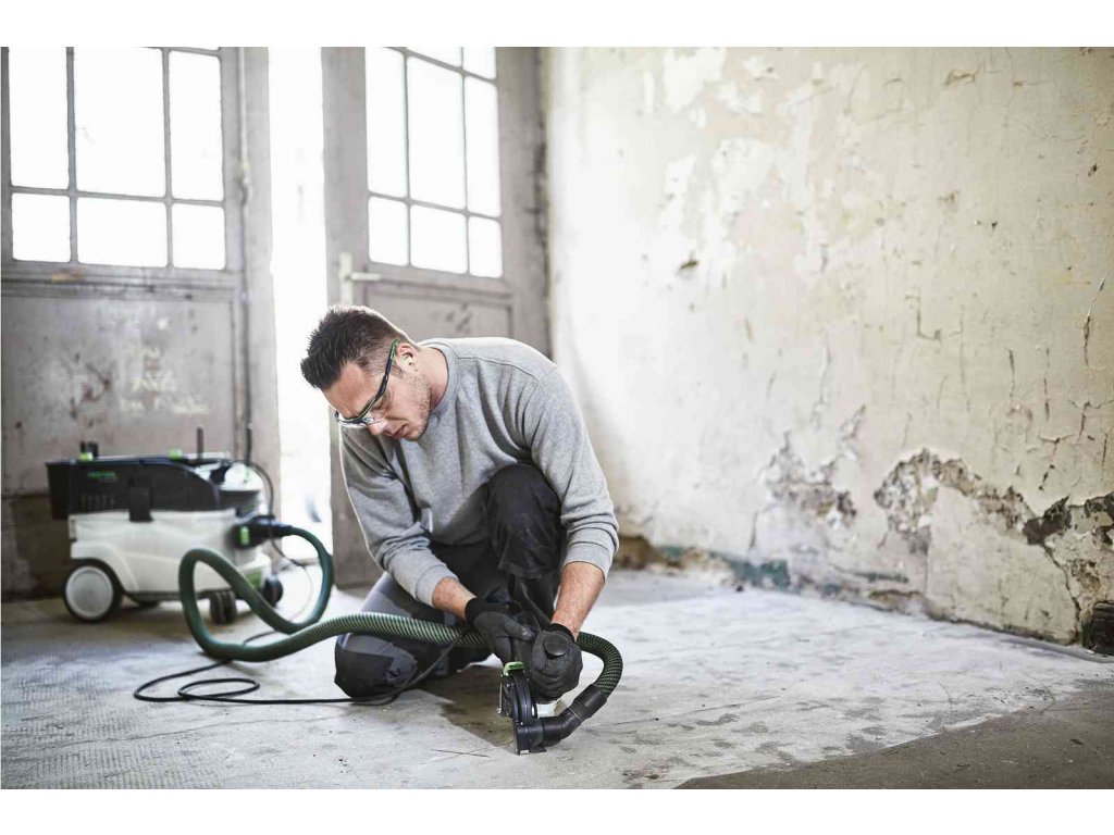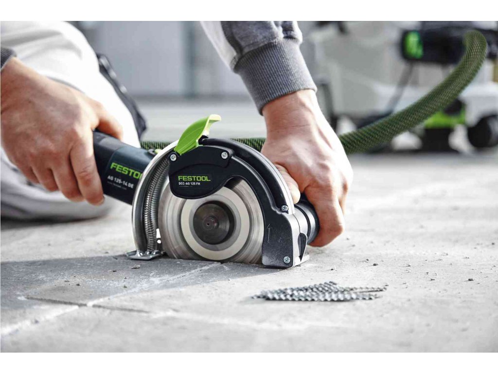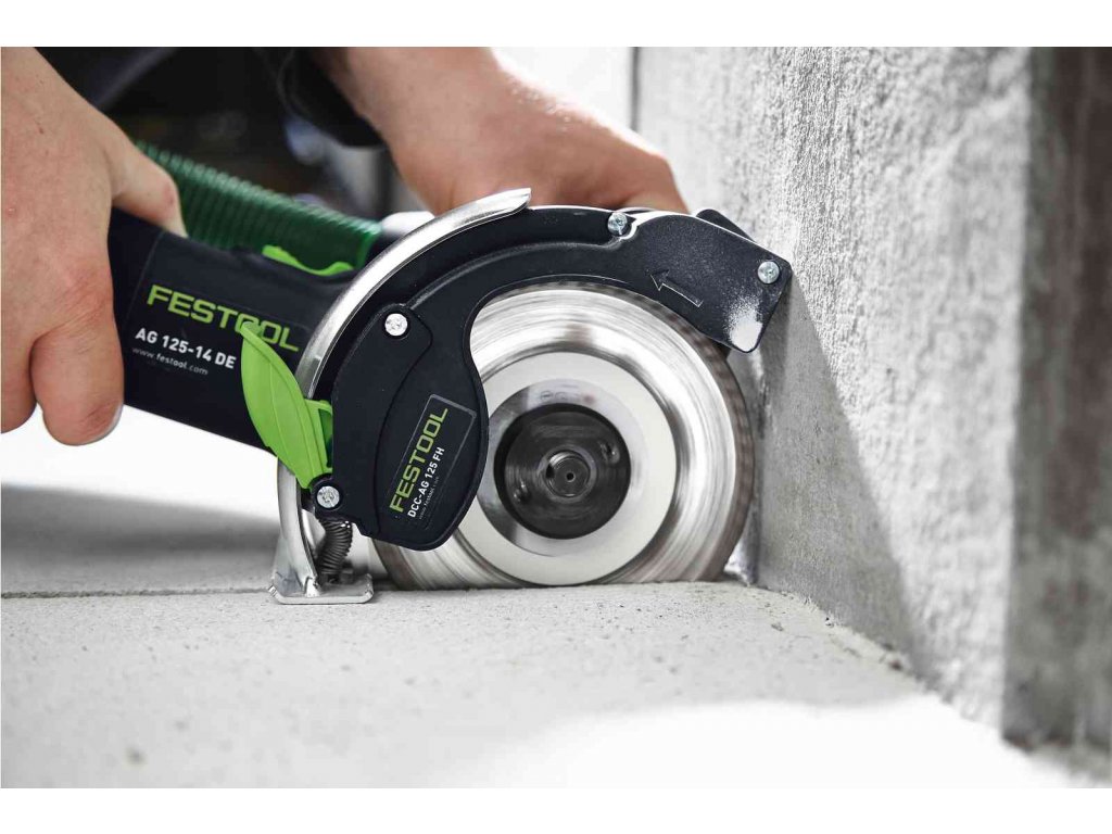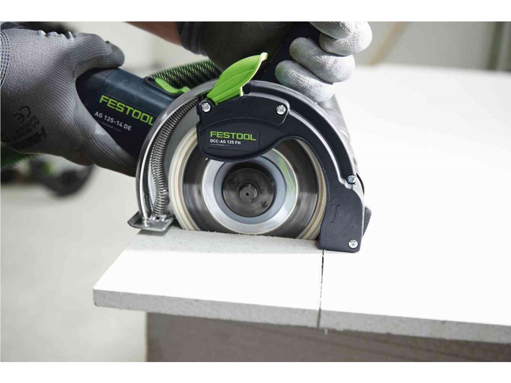 Zdařilá kombinace přesné, šikovné úhlové brusky a účinného odsávání prachu. Kryt odsávání umožňuje vše, ale nedovolí kompromisy ohledně čistoty. Nečistoty se odsávají tam, kde vznikají. Zároveň poskytuje DSC-AG 125 FH díky otevřené konstrukci při řezání volný výhled, ať při posuvném pohybu, nebo s otevřeným krytem blízko okraje. A díky hmotnosti méně než tři kilogramy je práce citelně lehká.