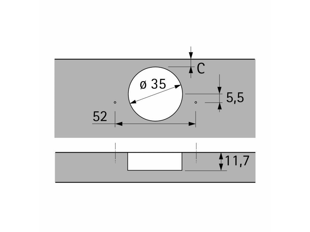 Hettich intermat 9973, Základna závěsu -3,5 mm, TH 42, k přišroubování