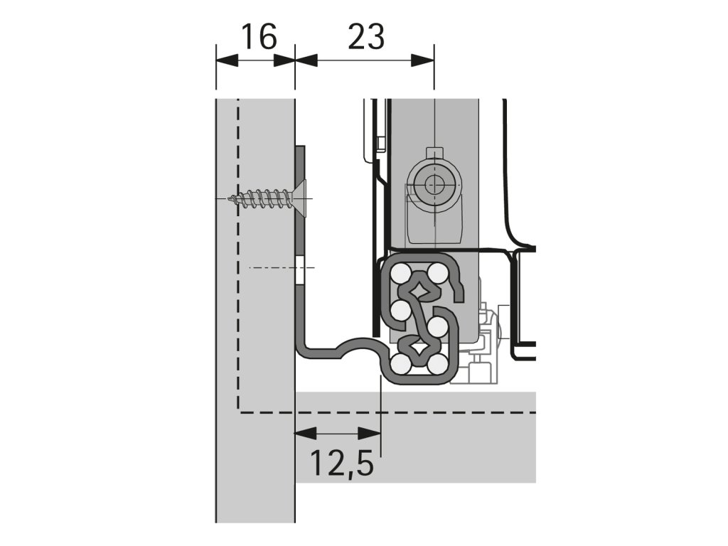 Hettich Quadro V6 Push to open, 300 mm, EB 12,5 (tl. boků korpusu 16 mm), vosnost 25 kg, L+P