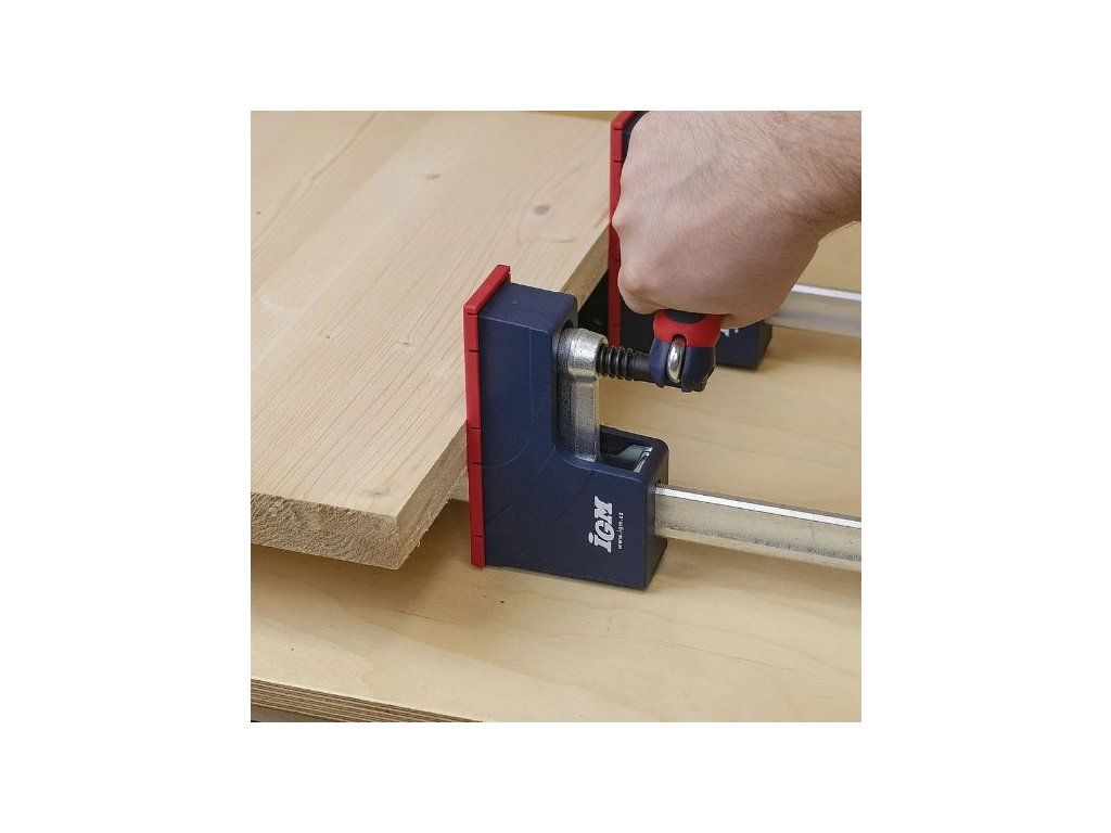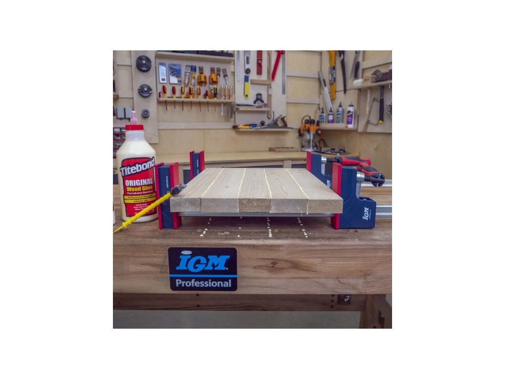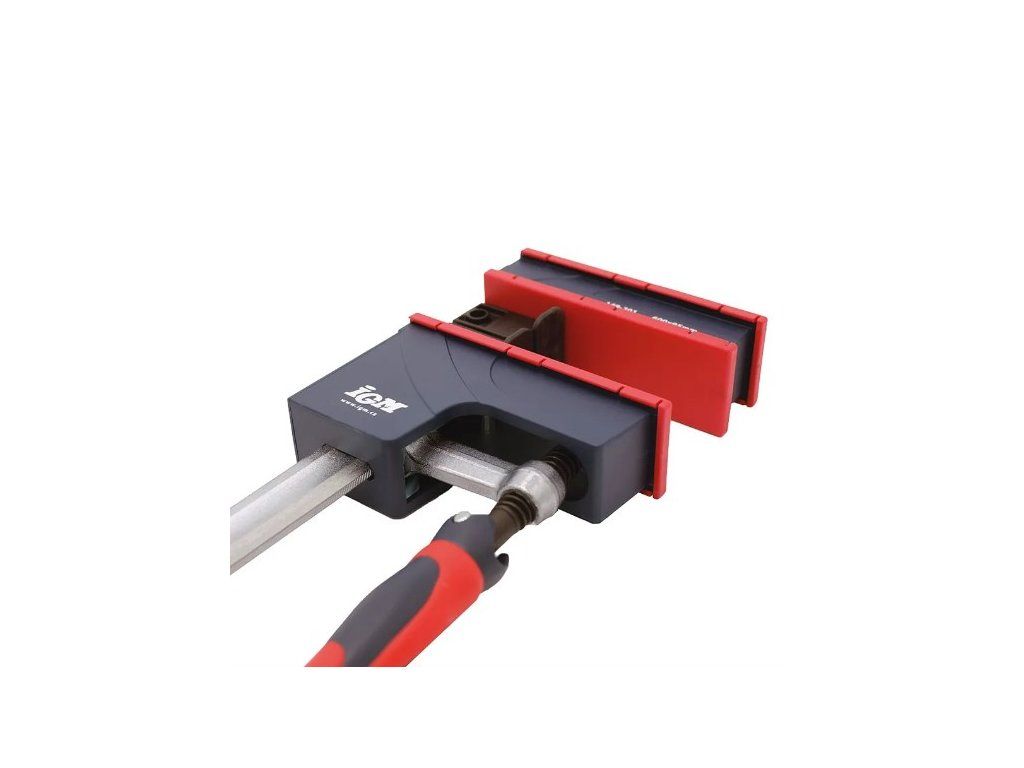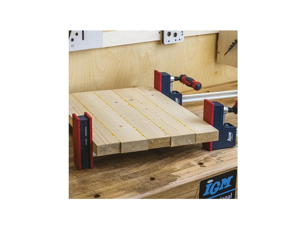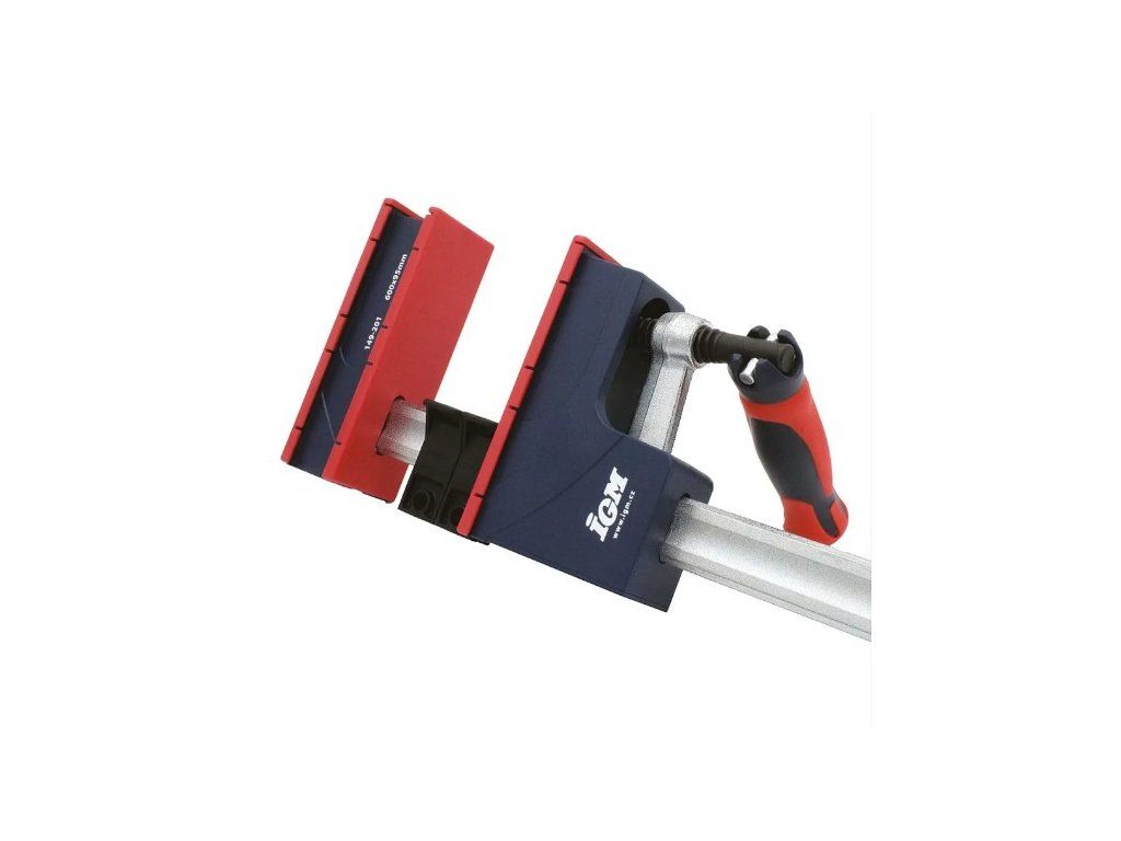 Korpusové svěrky IGM jsou určené pro univerzální použití a jejich masivnost je zárukou maximálního stažení. Vodící tyč je vyrobena z pozinkované oceli tažené za studena. Vodící tyč je výrazně profilovaná, aby minimalizovala prohýbání. Tvrzená ramena pohybující se po vodící tyči udržují konstantní úhel 90° a to i při zatížení. Patentovaný protiskluzový systém slouží k pevnému zafixování v potřebné poloze. Rameno se stahováním je opatřena rukojetí s možností vyklopení. Obě ramena jsou krytovaná plastem, který chrání před znečištěním od lepidla. Velká stahovací plocha ramene zabraňuje poškození povrchů stahovaného materiálu. Podpěry na vodící tyči udržují rovinu svěrky a jsou ideální pro použití na pracovním stole. Posuvná rameno je vyjímatelné a můžete jej otočit a svěrku použít pro rozpírání. Korpusová svěrka je ideálním řešením pro profesionální využití.